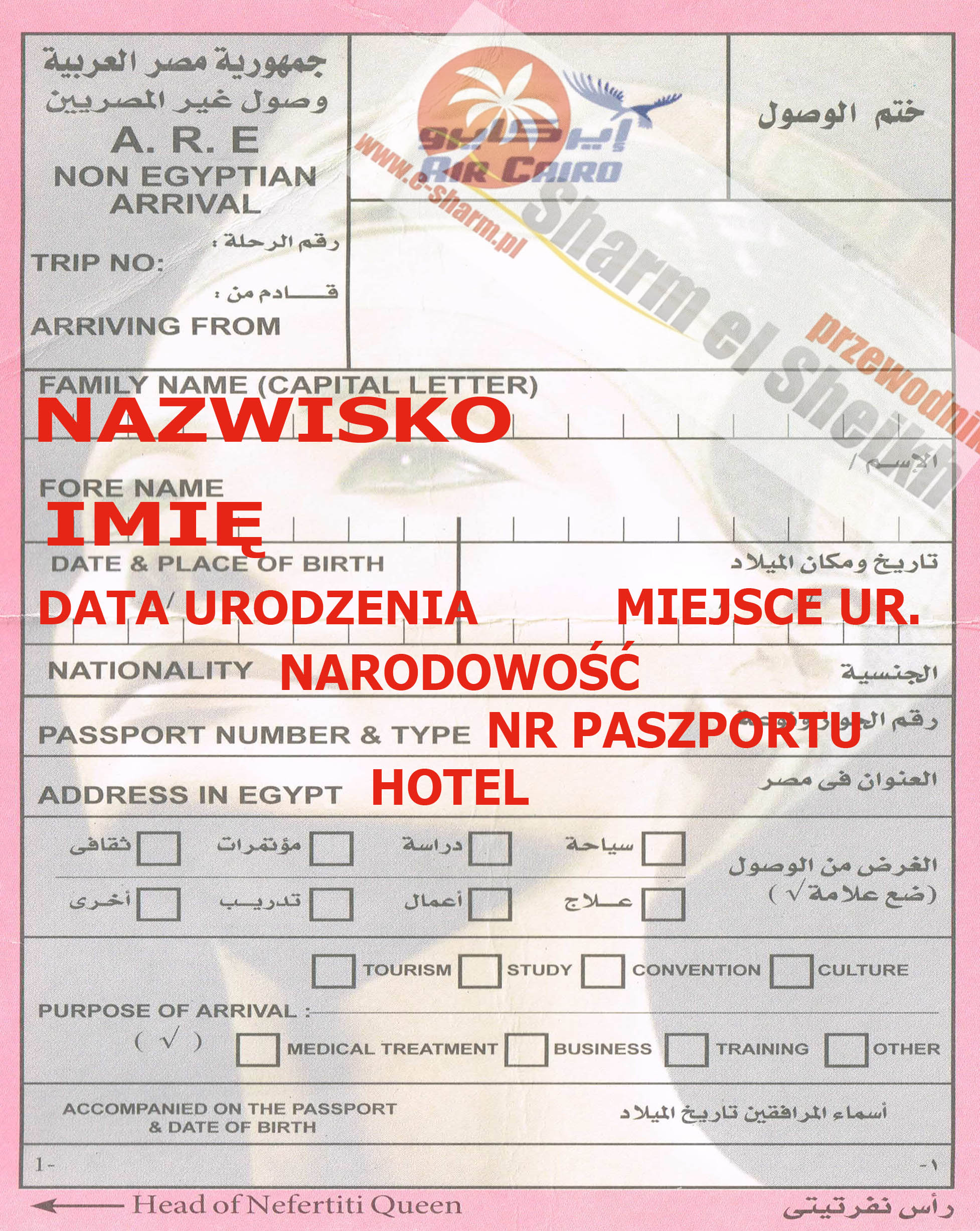 NA LOTNISKU W SHARM EL SHEIKH wszyscy wypełniają „kartę wjazdu” – warto mieć długopis (karty są rozdawane w samolocie lub na lotnisku bezpłatnie)